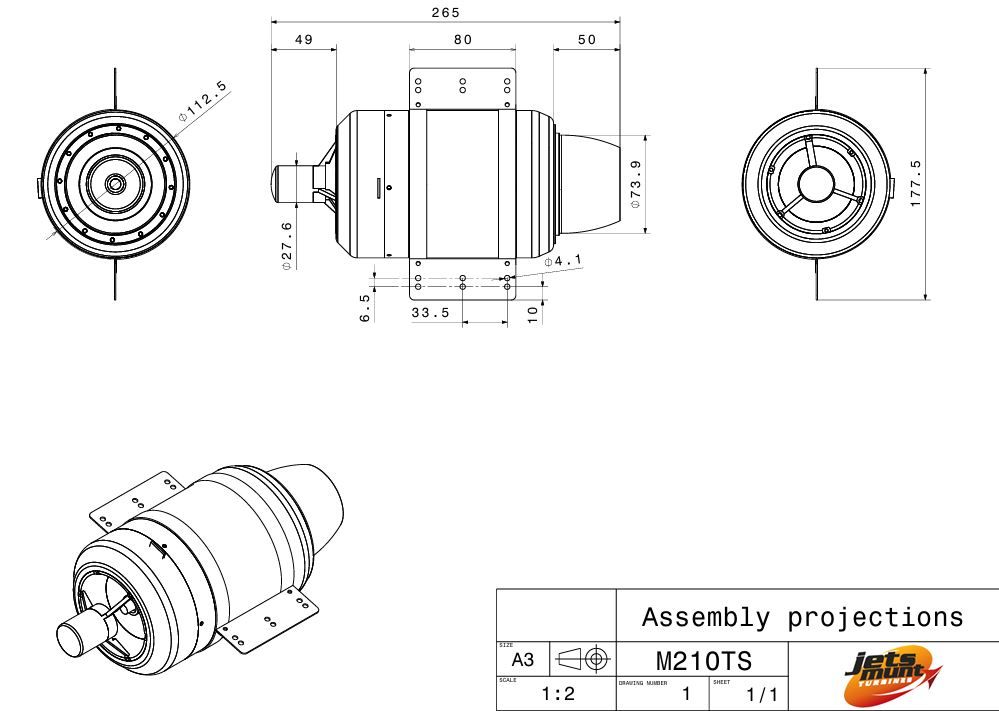 The Jets Munt M210TS turbine engine is a high-output RC jet turbine designed for pilots who demand maximum thrust, precision control, and proven reliability. Delivering an impressive 210N (47.2 lbs) of thrust, the M210TS is built for large-scale RC jets, high-performance sport aircraft, and demanding turbine applications.